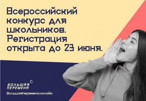 24.04.2020Конкурс «Большая перемена» проводится при поддержке Минпросвещения России. Он открывает серьёзные возможности для самореализации школьников. Участие в нём могут принять учащиеся 8–10-х классов. ⠀ 💥Победителей ждут щедрые призы, среди которых – денежное вознаграждение на оплату обучения в вузах и колледжах, путёвки в «Артек», финансовая поддержка школ и многое другое. ⠀ Приём заявок продлится до 23 июня на сайте bolshayaperemena.online.