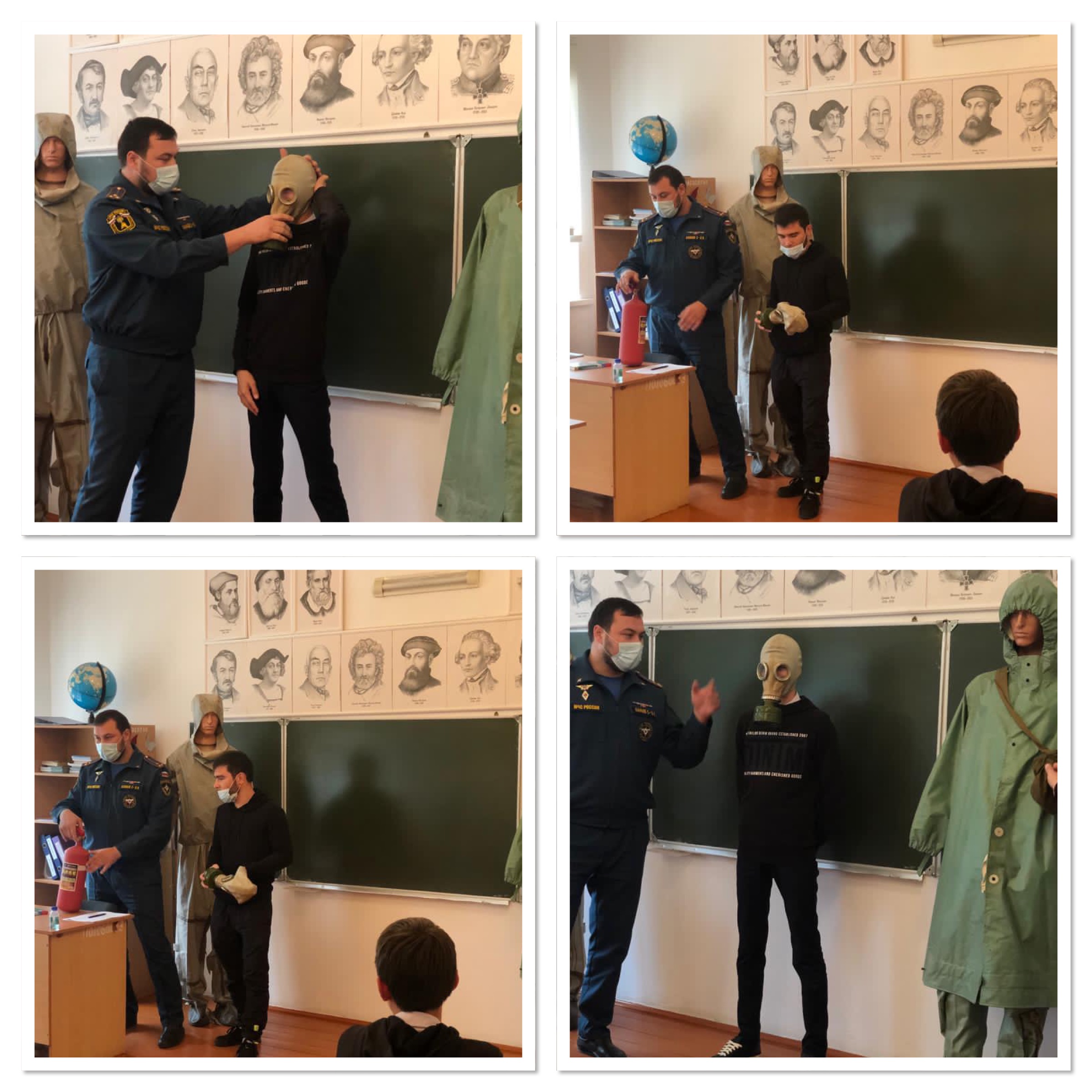 Сегодня 02.11.2020г в нашей школе была проведена беседа в 9-11 классах. Беседа была на тему « Использования противогазов ,огнетушителей в ЧС»