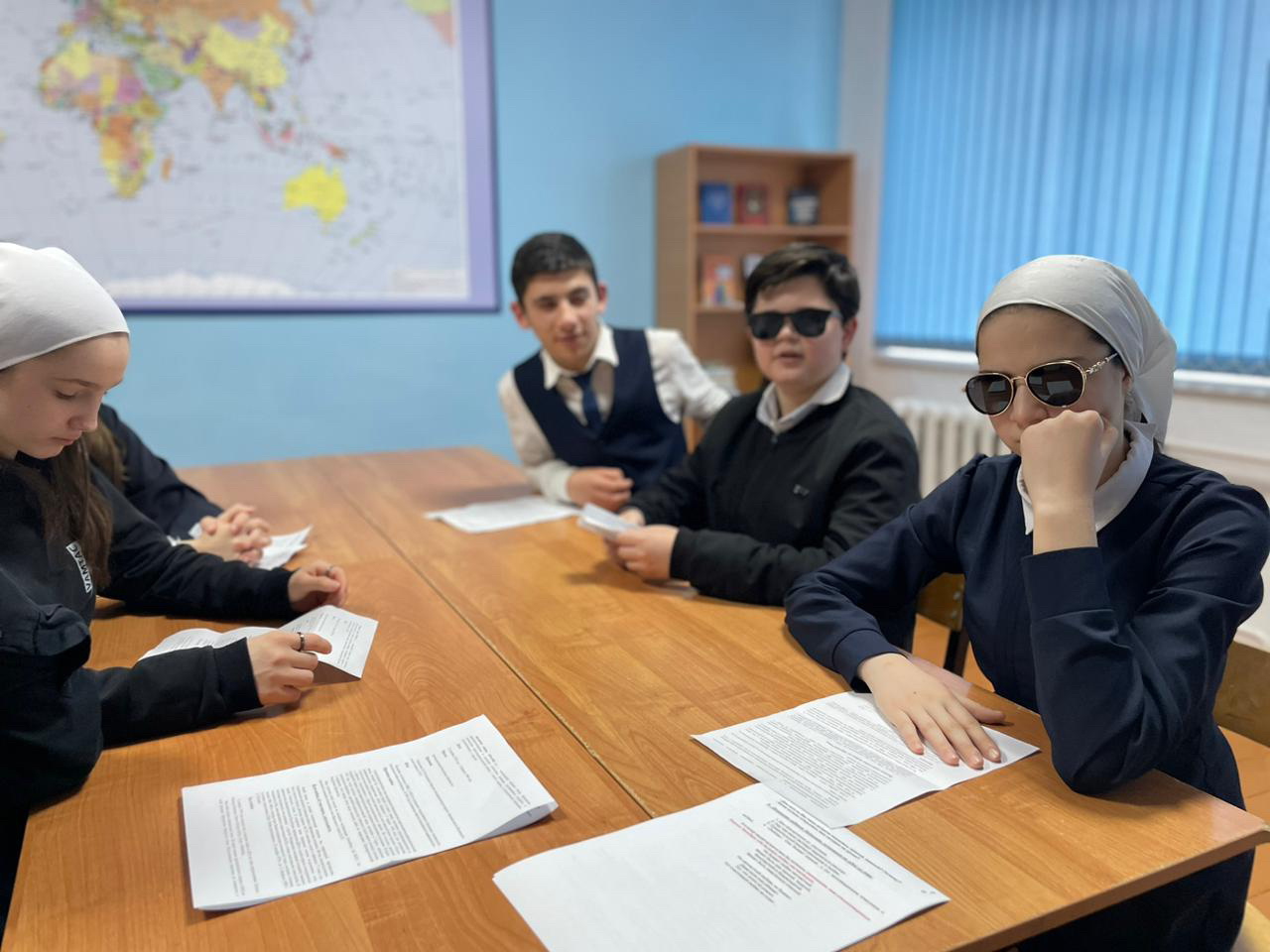 -Круглый стол «Здесь под небом чужим».Советник директора по воспитанию и взаимодействию с детскими общественными объединениями,Басаева И.Д. совместно с педагогом истории-Мусаевой Х.М. организовали круглый стол.