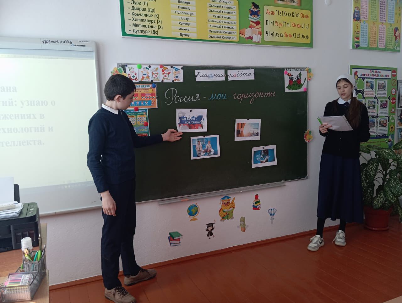 В МБОУ "СОШ с. Старый-Ачхой" 29 февраля на новом занятии курса «Россия — мои горизонты» учащиеся познакомились с темой « Россия — страна цифровых технологий: узнаю о профессиях и достижениях в сфере цифровых технологий и искусственного интеллекта»