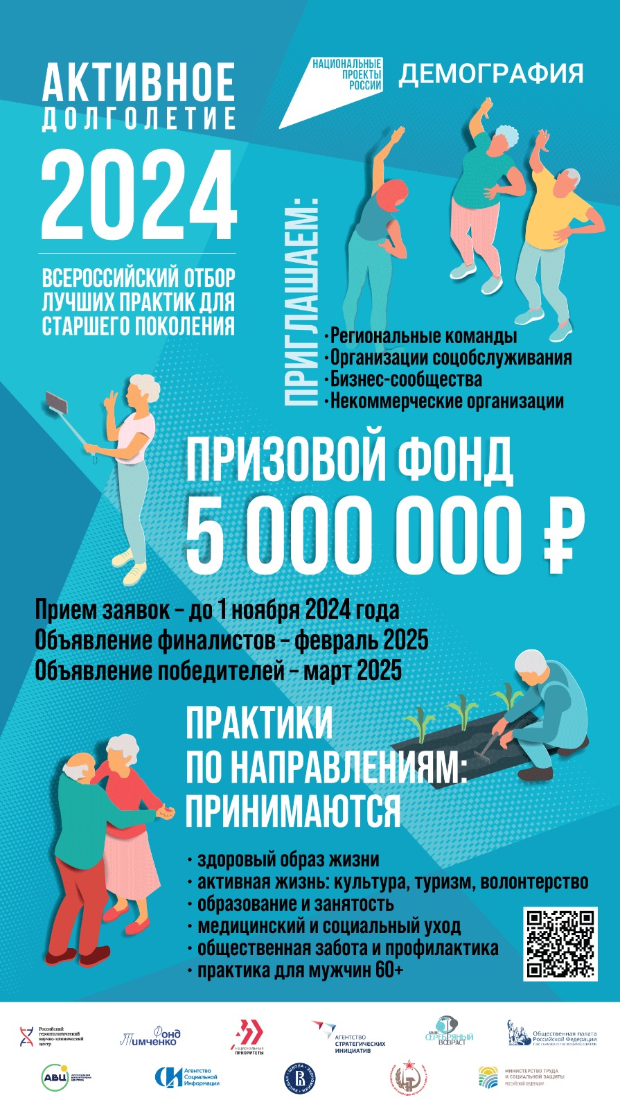 Организаторы Всероссийского отбора лучших практик для старшего поколения – АНО «Национальные приоритеты» и Минтруд России при поддержке Агентства стратегических инициатив.